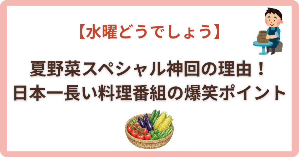 【水曜どうでしょう】夏野菜スペシャル神回の理由!日本一長い料理番組の爆笑ポイント